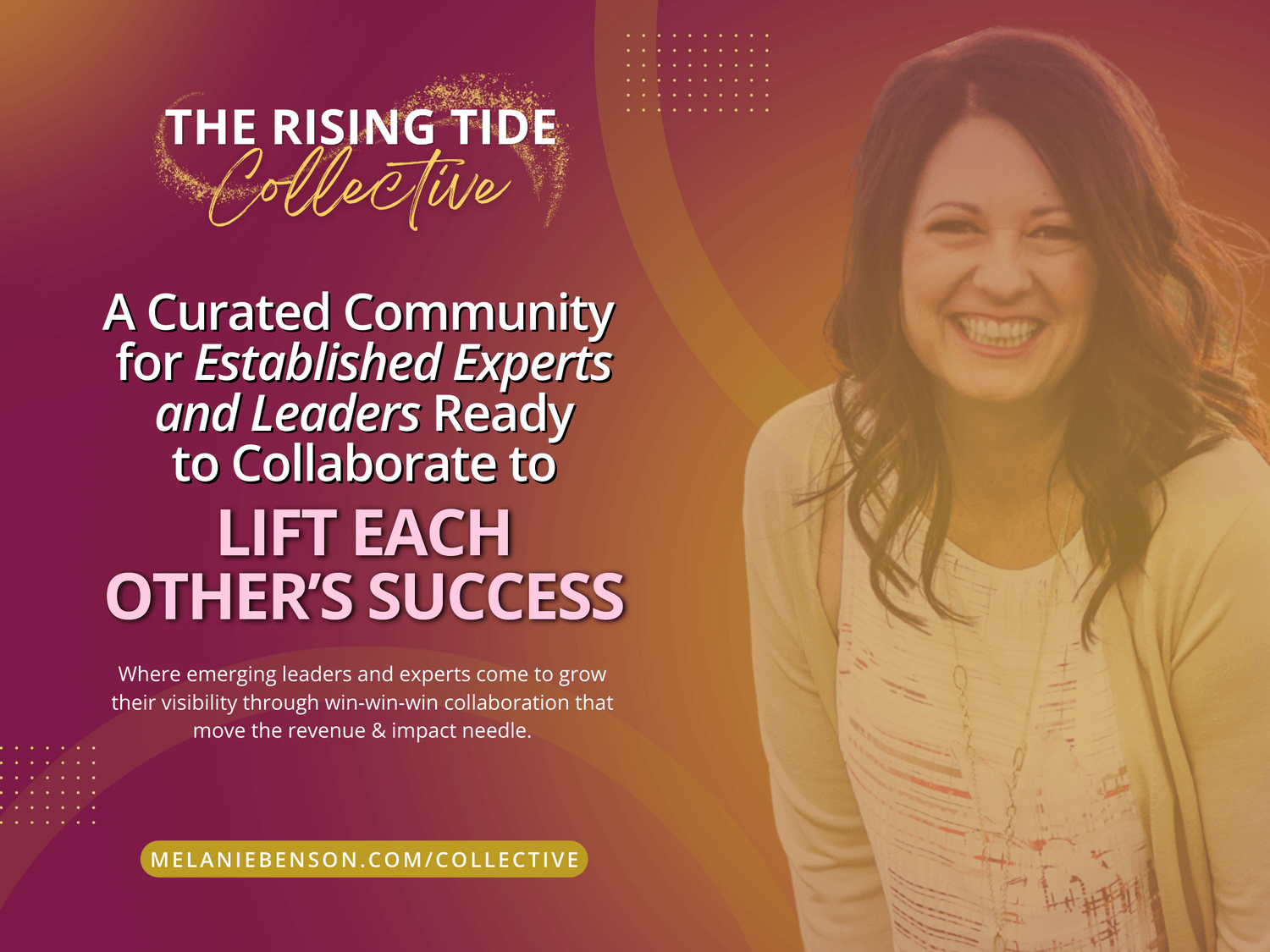 The Rising Tide Collective, created by Authority Amplifier Melanie Benson, is a curated community designed for high-caliber experts who want to expand their visibility, impact, and opportunities through aligned collaboration.